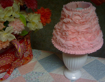 My friend Mary, made this little flowered lamp for "baby no name's" nursery. She also made a little daisy lamp. She copied them after a popular Pottery Barn design. (I plan to make a special blog posting about her creation of these lamps - so watch for that!)