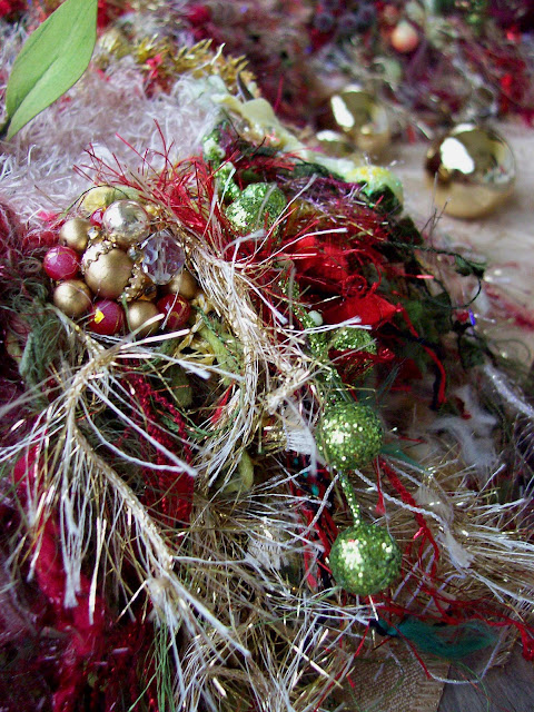 This nest has been a dream of mine for such a long time.  The making of a nest like this - for me- takes months - even years to create.  I work on collecting the embellishments for a very long time - always looking when we travel, when I go to the flea markets, every where I go.   The planning for a nest   - and the actual creating of the nest is intense - I've neglected this house, the laundry, the shopping, ~~ my sweet Gardener (!!).  Somewhere in this Sacred Yarn room full of nests, and boxes, and tissue and tags, and YARN - I've lost my "nesting" sketch book!  (please pray that I find it before spring or we are all doomed!!)