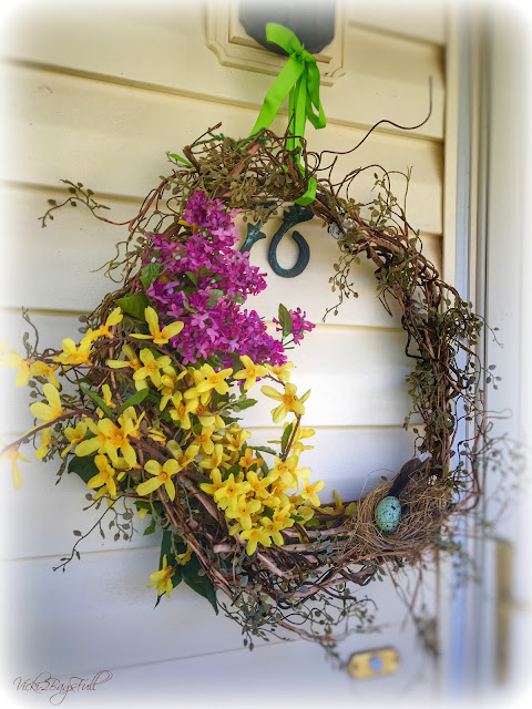I love your Spring wreath with its nest and egg and cheerful yellow flowers. What a splendid idea to deck your door for the season.